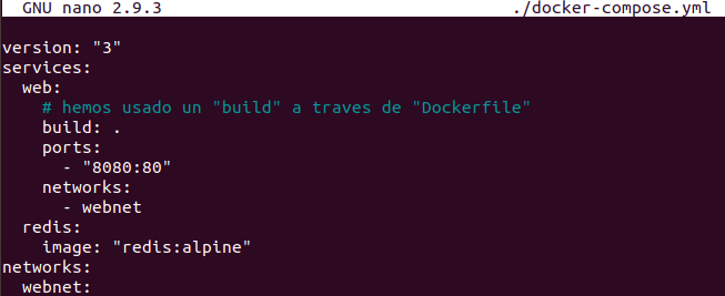 Este archivo puede ser configurado con muchos más parámetros como volúmenes de acceso (para hacer los datos permanentes), links, servidores proxy, etc.